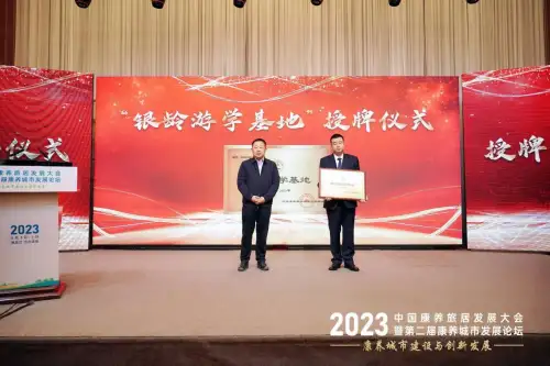 此外“银龄游学基地”的授牌仪式也在此次大会中举行,中国老年学和老年医学学会副会长、广西长寿产业发展促进会会长叶乐阳担任主持,在授牌仪式上,中国老年学和老年医学学会常务副秘书长、文化和旅游分会总干事杨勇宣读了“银龄游学基地标准”以及“银龄游学基地批复文件”,并由北京京和文旅发展研究院院长、国家文化和旅游研究基地首席专家、中国老年学和老年医学学会文化和旅游分会主任委员范周进行了授牌。此次授牌仪式,标志着进一步的促进了康养城市建设和业界合作,推动康养旅居产业的创新发展。