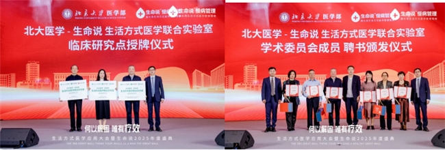 同时,北大医学-生命说生活方式医学联合实验室正式为首批临床研究点——吕梁泰化医院、临汾市尧都区路东办事处第二社区卫生服务中心、青海修固综合门诊部授牌;同时,王培玉教授为吴开俊(代领)、梁凤、王书会、吴仕元、李青海、钟文等六位专家颁发学术委员会聘书。此举标志着生活方式医学从理论研究向基层实践转化迈出坚实步伐。